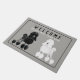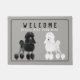 Cute doormat featuring an illustration of the Black and White Poodle. Customizable background color and texts. Perfect gift for the dog lover or Poodle owner.
