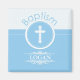 A cross in a circle with the word Baptism overlaying the circle is the center of the custom gift, souvenir, giveaway and party essential. Add that baby boy’s name, venue and date of baptism for a truly personalized Baptism congratulations!