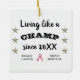 Living like a champ since YYYY, breast cancer proud survivor | pink ribbon, silver effect stars | fully customizable text, for light background