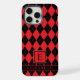 Customizable Bright Red Pink Black Argyle Pattern iPhone Case