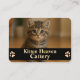 Make a lasting impression with this adorable and professional cattery business card featuring a sweet kitten photo, stylish black and gold accents, and paw print details. Fully customizable with your cattery’s name, contact info, website, and slogan. Perfect for breeders, pet services, or kitten adoption centers. Ideal for building trust and showcasing your brand’s charm and care.