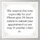 Your time is precious. In this day and age, there is no reason that a client can not give you adequate time to cancel an appointment. These notices are useful for anyone in the service industry, especially salons, spas, estheticians, nail techs, lash techs, massage therapists and, more. Order a few to post around the shop to prevent no-show clients or late clients. You can also add your own logo, change wording, styles and colors on most.