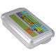 Hey! Wait for me! This Customizable Catching the School Bus Cartoon Cake Pan will get your day off to a great start. It features a cartoon drawing of a child carrying a red, plaid lunchbox while making a mad dash for the school bus. The child is wearing royal blue pants and a turquoise shirt. He is running down an orange, paved sidewalk. The sidewalk is surrounded by the type of green lawn only found in suburbia. There is also a white, picket fence. In the street, we see a vibrant, yellow school bus with aqua windows and glass doors. The name on the side of the bus is customizable. Simply click on the "Customize It" icon to replace the existing text with your own school name. Behind the bus, we see an aqua sky and the silhouettes of cedar trees. Order it now. You don't want to be tardy!