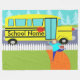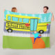 Hey! Wait for me! This Customizable Catching the School Bus Cartoon Fleece Blanket will get your day off to a great start. It features a cartoon drawing of a child carrying a red, plaid lunchbox while making a mad dash for the school bus. The child is wearing royal blue pants and a turquoise shirt. He is running down an orange, paved sidewalk. The sidewalk is surrounded by the type of green lawn only found in suburbia. There is also a white, picket fence. In the street, we see a vibrant, yellow school bus with aqua windows and glass doors. The name on the side of the bus is customizable. Behind the bus, we see an aqua sky and the silhouettes of cedar trees. Order it now. You don't want to be tardy!