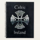 This simple, bold design is a Celtic cross rendered in a chrome style on a black paper background. The text above and below is customizable to say anything you want.