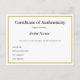 Customizable Certificate of Authenticity for Art Postcard