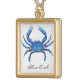 Original fine art design of an Eastern or Chesapeake Blue Crab by illustrator Carolyn McFann of Two Purring Cats Studio on a customizable pendant for seafood and crustacean fans.