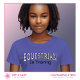 This customizable t-shirt for young horseback riders is a great way to spread the word about your equestrian facility. Use this t-shirt to identify equestrian riders in training, unify members of an equestrian team, to promote your summer horseback riding camp or riding program, or as a gift for young horse lovers. This shirt has “Equestrian in Training” typography on the front and a place to add a logo, stable name, or location on the back. Ideal for identifying riders in training, promoting horseback riding camps or programs, or gifting to young horse lovers. Whether it’s for everyday wear or a special holiday surprise, this shirt is a fun and functional way to spread the equestrian spirit.
