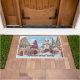 This festive and colorful Christmas holiday doormat features a small town decorated for the Christmas holiday. Set in a winter holiday scene are the snowcapped village homes filled with wreaths and other Christmas decorations. It's a perfect piece of nostalgia and holiday décor for your front door or even inside your door! This festive holiday scene awaits your guests at your door. We also have a non-customizable version of our Christmas doormat with a simple holiday greeting that's available in our Christmas doormat collection. Happy Holidays, Merry Christmas and thank you for shopping our store!