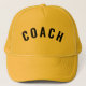This customizable COACH text statement yellow trucker hat offers high visibility and professional style for coaches. Featuring bold COACH text on a vibrant yellow front panel, it ensures clear identification. With an adjustable snapback fit and breathable mesh back, it’s perfect for sports events, team activities, or casual wear, combining practicality with modern design.