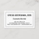 This simple, customizable, and minimalist business card design features a triple-line border. It could be used by a professional such as a cosmetic dentist, dental surgeon, family dentist or endodontist. The name, profession and contact info can be customized.