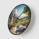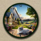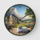 • This customizable clock features a serene countryside scene with a charming cottage, lush gardens, and a fluffy Ragdoll cat resting peacefully.