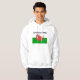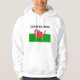 A hooded sweatshirt to customize with a cute Welsh Red Dragon on a green and white background, and 'Wales forever!' in black lettering; from a handpainted watercolour illustration by Judy Adamson.