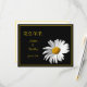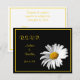 The text on this daisy wedding response (rsvp) card is fully customizable. To change the wording, use the personalize options. To change font, font color, or the background color, you can use the customize option. The colors for this response card are black, white, and golden yellow. It would also look nice with a navy background or dark blue background. The wording on this card could be changed to become a reception card, accomodation card, or direction card as well.