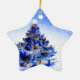 Customizable decorated blue christmas tree ceramic ornament
