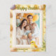 Picture this: a delightful, customizable Easter postcard that features your very own photo nestled inside a charming white wooden frame. Perfect for adding a personal touch to your Easter wishes! To make things even more adorable, there's a fluffy, wide-eyed chick surrounded by pastel-colored Easter eggs—just begging for attention. 🌸🥚