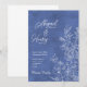 This stunning engagement party invitation features a beautiful blue background with delicate floral outlines, creating a charming and modern look. The details read:**"Abigail Martinez