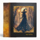 Make a magical statement with this captivating binder featuring a cover image of a witch clad in a sparkly black dress illuminated by shimmering accents that catch the light. She stands in the forest holding a staff crowned with a radiant orange crystal that glows warmly. The image creates an enchanting scene—perfect for anyone who loves a touch of the mystical in their everyday essentials. This binder is ideal for keeping your notes, spells, or creative projects organized with a flourish of forest magic and witchy elegance. A protective gold pentacle adorns the back.