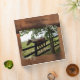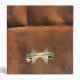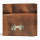 Saddlebags Faux Suede Leather background with customizable photo and text. Bronze wings surrounded by bronze ribbon on back. Bronze filigree accents over photo.