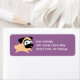 A cute return address label that you can customize to match your stationery! Use the template to add your name and address to the label. In addition, the background color of the label itself can be adjusted to match your envelope. (Click on the eye dropper for more custom colors. The default background color is light purple #996699.)