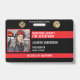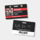 The customizable fire department ID badge features a firefighter emblem at the top that can be customized to your department as well as a place for the state logo as well. Customize with the firefighter's photo on the left. Beside the photo, the firefighter’s name, badge number, rank, and department are displayed. Add your own barcode to the back of the card, along with issue and expiration dates, and description of the firefighter, captain, chief, or office employee.