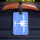 The front of this whimsical design features a flight attendant serving a glass of wine and unique text that reads: "Bon Voyage". A muted cityscape completes the look. The reverse side has a white silhouette of an airplane on a customizable blue background with text for you to add your name and additional information. You can customize the background color by using the "customize" button and then selecting "edit" and choose your background color. This unique luggage tag makes a great gift for that flight attendant or world traveler in your life!