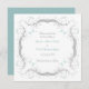 The text on this aqua blue, silver, and white abstract floral save the date card is fully customizable. It is currently set to print on metallic ice white paper which adds a shimmery flair to this card. If you don't want the shine, it is easy to change the paper type to whatever you want. You can also change the background color and/or font or font color of this card using the customize option. Aqua blue, silver, and white is a popular wedding color theme.