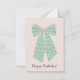 Customizable Gingham Coquette Bow Blush Birthday Note Card