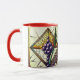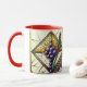 Start your day under the soft glow of the Customizable "Grapes and Wheat" Stained Glass Mug. This high-quality ceramic mug features an exquisite circular illustration of deep amethyst-purple grapes and vibrant emerald-green wheat stalks, all set within a classic diamond-shaped cathedral glass frame.