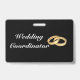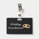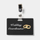 Two gold wedding rings appear on this wedding coordinator badge. This black badge can be personalized with your title such as "Wedding Coordinator".