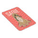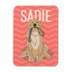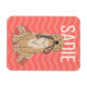 Show some love for your dog with this fully customizable magnet featuring a vibrant melon chevron motif and Golden Retriever holding its leash.