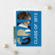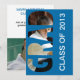 Customizable GRAD Cutout Graduation Announcement Card. The word GRAD is cut out on the front to show your favorite vertical photo peeking through. You also add the graduation year. The back side allows you to show your photo on the bottom. On the top of the card add the graduates name and all your open house or graduation details.