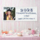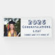 Design features the photo you supply displayed at left against a white background. Your text is featured at right in a navy-blue font.