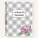 Customizable Gray Buffalo Plaid Pink Rose Notebook