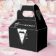 Customizable Groomsman Favor Box design features the look of a tuxedo as main design. The word, "Groomsman" may be changed to read Best Man, Usher, or other. Order together with coordinating "Bride" design, substitute wording with couple names, and you have the perfect wedding or shower favors.