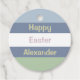 Horizontal pastel light blue, light green and dusty blue striped pattern and customizable text: Happy Easter. Click edit to change the text and name to your liking,