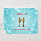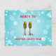 Here's to another crappy year | graphic of gold colored champagne flutes with gold ribbons | blue snowflakes winter background | fully customizable text