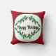 Spread holiday cheer with this customizable throw pillow featuring a festive holly wreath and the editable message "Happy Holidays." Personalize it with your name or a special message to create a truly unique and thoughtful gift. The bold red color and classic design make it a perfect addition to any holiday decor.