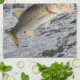 Fishing enthusiasts, nature lovers, and watersports fans will love the image of a large-mouth bass on a rough wave background.