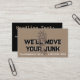 Bold, graphic, original fully customizable business card template to promote your junk hauling business. Masculine work boot print against neutral background with no nonsense lettering. Edit text and color to suit. Great gift for someone in the job market - especially suitable for someone in the area of manual labor, construction, welding, hauling, plumbing, electricity, building, roofing, landscaping etc....where men keep it straight and no nonsense.