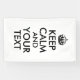 It says, "Keep Calm and Your Text." Add your own words in the template to make a keep calm saying to match your interests or personality.