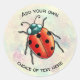 Customisbale sticker featuring an illustration of a ladybird / ladybug. You can change the text to say whatever you like!