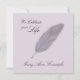 Pale Violet Feather Design life celebration Celebrate the life of someone who will be or who is very much missed. These elegant and understated invitations feature a simple feather on a pale violet background and invite you to celebrate a life. Customizable text means these can be used for either a traditional wake, for a living funeral, or for a memorial gathering.