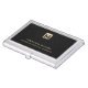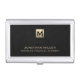Elevate your professional presentation with this Customizable Metal Business Card Case, designed for financial planners, wealth managers, financial advisors, and business professionals. Crafted with high-quality all-metal construction, this case exudes durability and style. The brushed metal monogram initial logo adorns the top, harmonizing with your name and title or custom text in elegant golden classic typography displayed on a refined black leather print backdrop. Carry your cards in this sophisticated case, making a lasting impression wherever you go. Experience the fusion of form and function in this essential accessory.