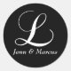Customizable Monogram Wedding Sticker. Customize with your names and dark background color