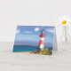 Customize this card for a guy or girl with this watercolor painted lighthouse prominent on the right side of the card. On the seaside, this coastal image shows the lighthouse surrounded by rocks and plants with the sand and sea. Wonderful personal card to with someone happy birthday!