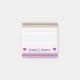 This notes design features an eyecatching pattern of stripes (or lines) of various colors. It also features a customized name near the bottom in purple colored text, between two heart shapes. [~Z0000122]