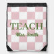 Customizable Name Teach Tote Cute Pink Checkered Drawstring Bag