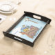 This is a well made, sturdy wooden tray with a flawless black finish and lovely map on the tray surface. It is both vintage & modern at the same time. Looks exactly like the photo; does not disappoint. So nice to find something of quality individually made and not the mass-produced 'shabby chic' merchandise seen in stores. I am so pleased to be able to give this to my college-age niece for her birthday. This can be used as a tray to hold jewelry or toiletries, or hung on the wall as art. The map surface is sealed (it is slightly shiny) so would be moisture resistant. It is well worth the asking price but I was able to apply a sale code as well. Very happy with my purchase. Map is crisp & clear and sealed with a water-resitant finish.
