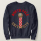 Stylized Striped "North Pole" with the words "North Pole University" wrapped around it. Says "GO ELVES" on the back - customize with your name or whatever.